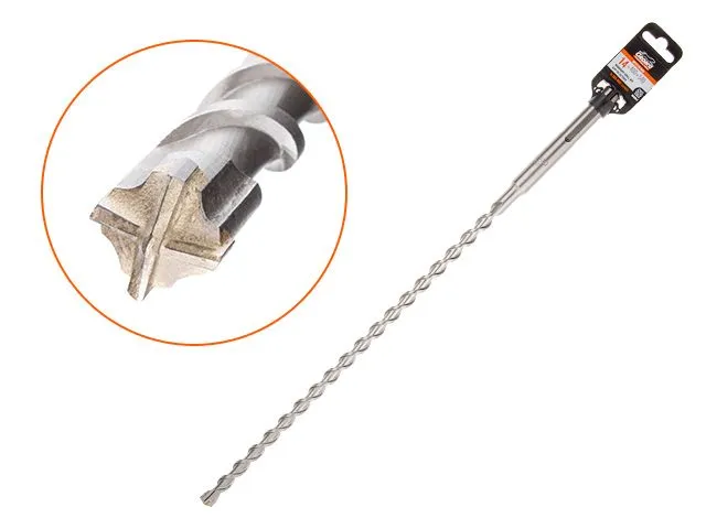 Тип и назначение: бур (сверло) для сверления отверстий в бетоне, армированном бетоне, кирпичной кладке, природном и искусственном камне. Оснащен твердосплавным карбид-вольфрамовым наконечником с четырьмя режущими кромками. Центрирующий наконечник обеспечивает точное засверливание. Корпус бура выполнен из закаленной конструкционной легированной стали и термообработан. Канавка U-образной формы способствует эффективному отводу шлама. Подходит для интенсивных нагрузок,