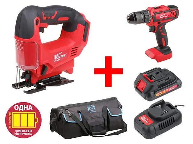 Аккум. лобзик WORTEX CJS 6529 в кор. ALL1 + АКЦИЯ (комплект с шуруповерт, акб, зу и сумка со скидой)
