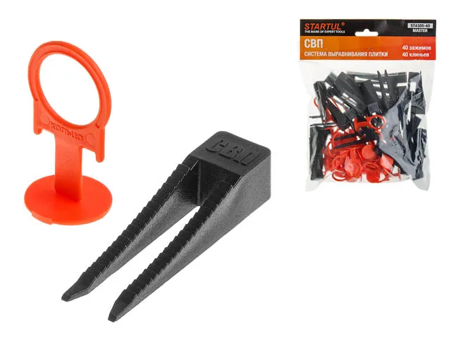 Система выравнивания плитки СВП (зажим 40 шт.+клин черный 40 шт.) STARTUL MASTER (ST4305-40)