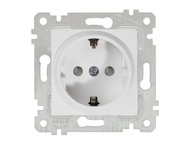 Розетка 1-ая (скрытая, без рамки, с/з, шторки) белая, RITA, MUTLUSAN