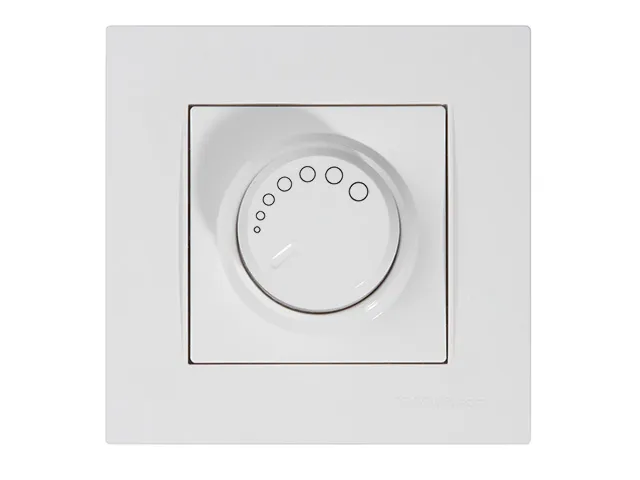 Выключатель поворотный с подсветкой (диммер) (скрытый, винт. зажим, 600Вт) белый, RITA, MUTLUSAN