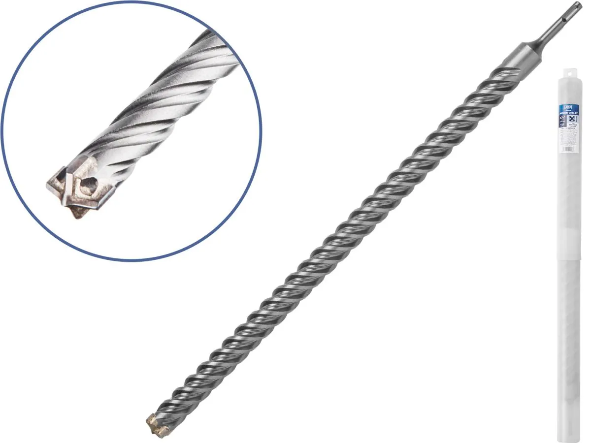 Тип и назначение: бур (сверло) для особо сложных работ при сверлении отверстий в железобетоне, бетоне, кирпичной кладке, камне, граните. Оснащен цельным X-образным твердосплавным наконечником Ceratizit повышенной твердости с четырьмя режущими кромками, который фиксируется особо прочным припоем, рассчитанным на высокие рабочие температуры и значительные ударные нагрузки. Центрирующий наконечник обеспечивает точное засверливание. 4 отдельные канавки быстро и эффективно удаляют шлам и повышают производительность. Тело сверла обладает большей жесткостью, а следовательно меньше подвержено колебаниям в процессе бурения, что улучшает точность просверленного отверстия, снижает износ тела бура и вибрации перфоратора. Подходит для интенсивных нагрузок,