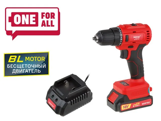Аккум. дрель-шуруповерт WORTEX BD 1815-1 DLi в чем. ALL1 XLT БЕСЩЕТ, 18 В, 50 Н*м, 1х1.5 А*ч, БЗП 10