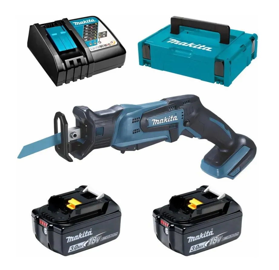 Поставляется в чемодане - для удобства хранения и транспортировки аккумуляторной сабельной пилы Makita DJR185RFE.