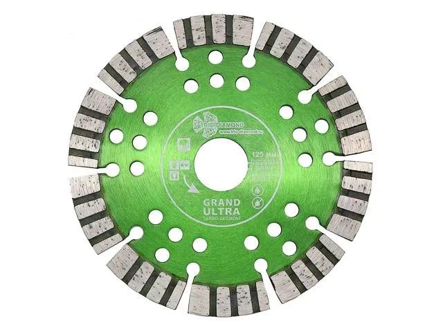 Особенности: рифленые сегменты режущей кромки обеспечивают высокую скорость реза, перфорация корпуса способствует дополнительному охлаждению диска.