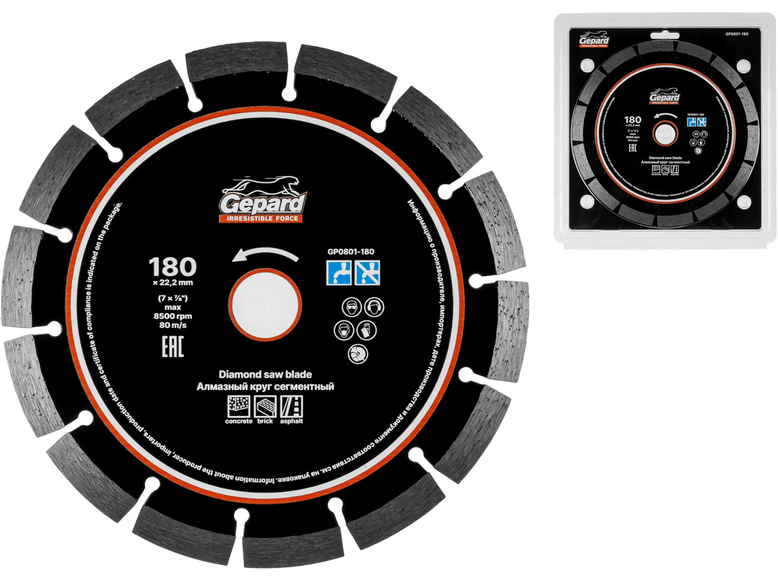 Алмазный круг 180х22 мм универс. сегмент. GEPARD