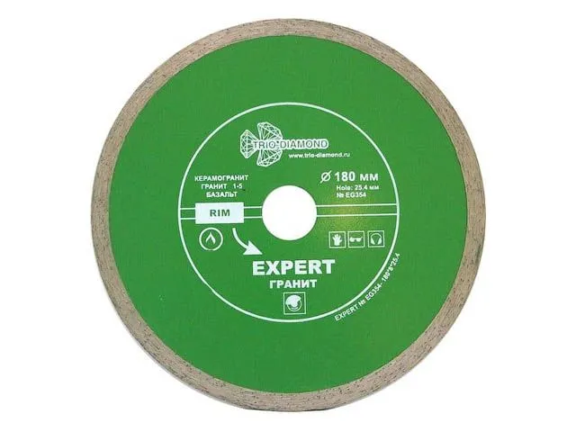 Особенности: диски со сплошной режущей кромкой, произведены методом горячего прессования. Обеспечивают гладкий ровный рез без сколов, применяются с водяным охлаждением.