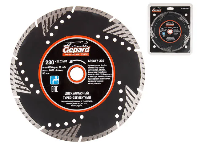 Алмазный круг 230х22 мм турбо-сегментный GEPARD