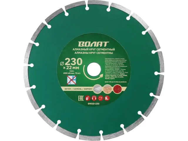 Алмазный круг 230х22 мм универс. сегмент. ВОЛАТ