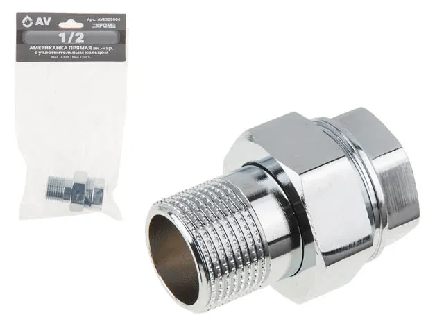 Американка прямая 1/2" вн.-нар. ХРОМ, AV Engineering (инд. упак.)