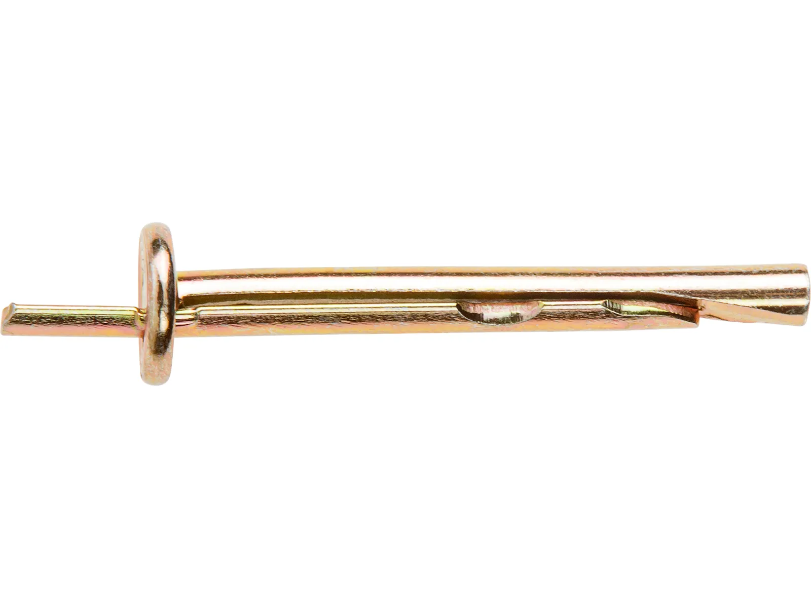 Используется для сквозного монтажа подвесных систем. При забивании распорного гвоздя анкер расклинивается в стенках просверленного