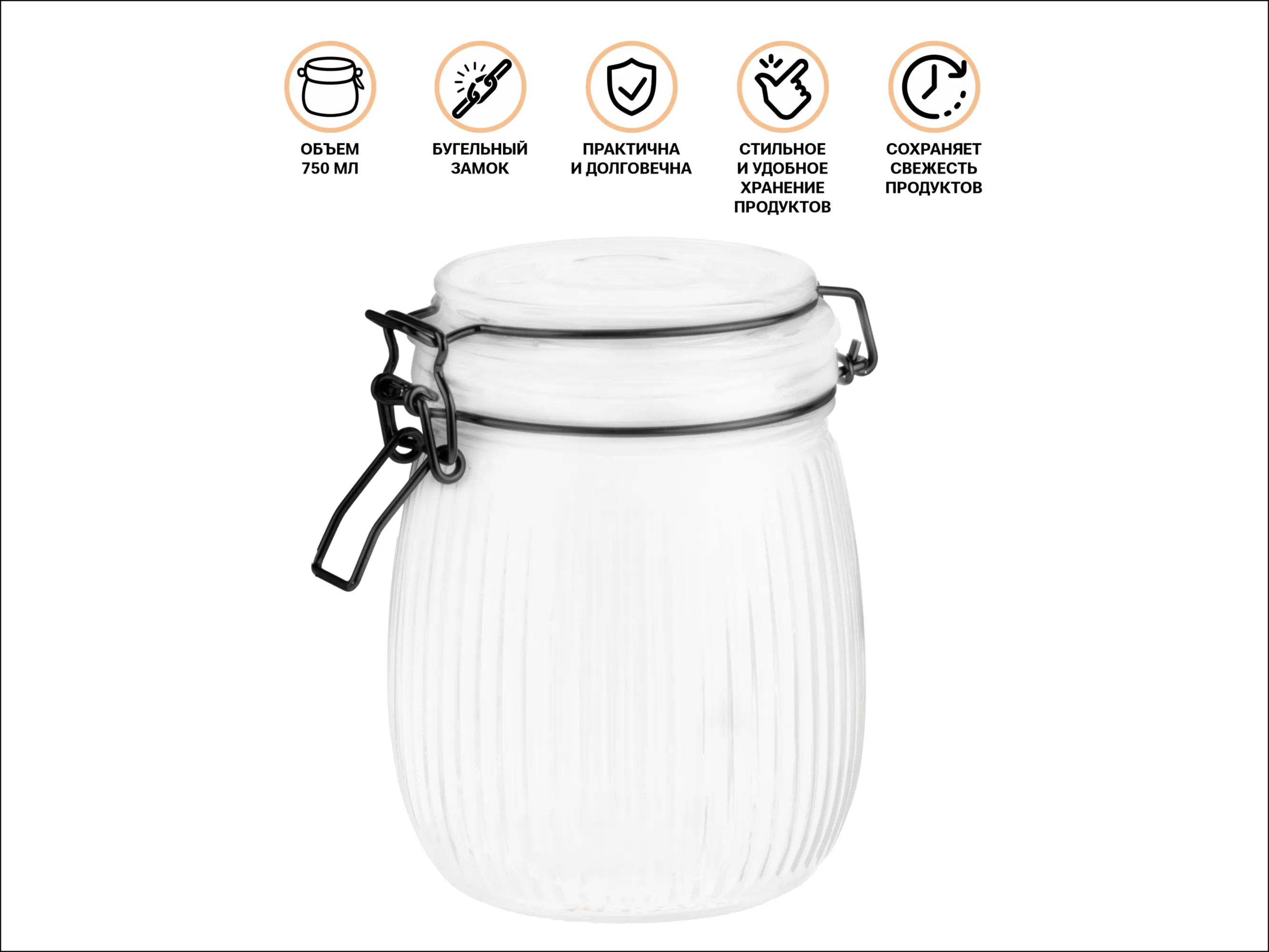 Банка с бугельным замком полностью герметична и не пропускает кислород, поэтому продукция не испортится длительное время.