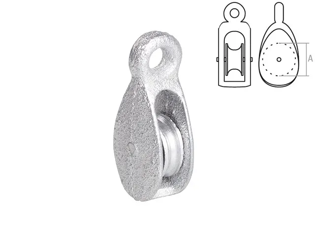 Стальной оцинкованный блок с металлическим шкивом применяется для изменения направления движения для тросов и канатов, увеличения силы в грузоподъемном оборудовании.