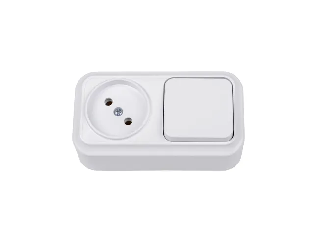 Блок выкл. 1 клав. + розетка (открытая, б/з) белая, Вариант, Bylectrica