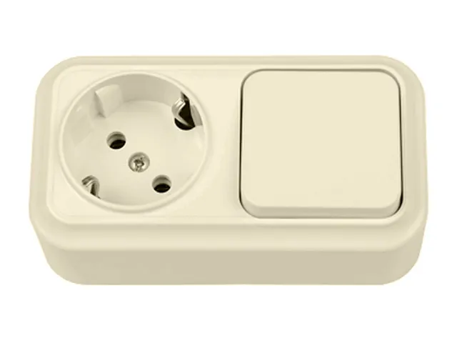 Блок выкл. 1 клав. + розетка (открытая, с/з) бежеваяя, Вариант, BYLECTRICA