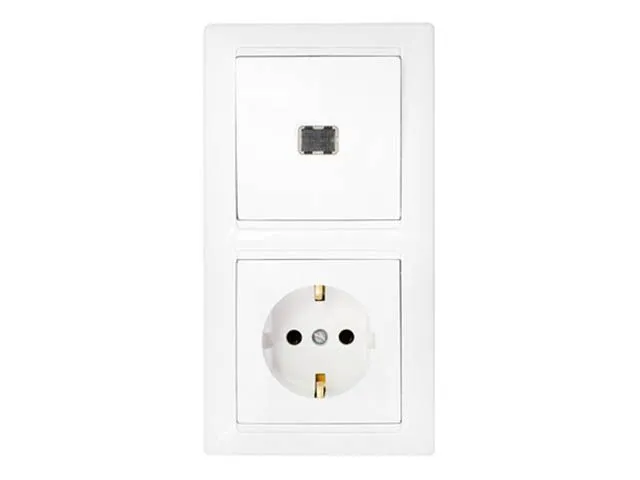 Блок выкл. 1 клав. + розетка (скрытая, с/з) со световой индикацией, белая, Стиль, BYLECTRICA