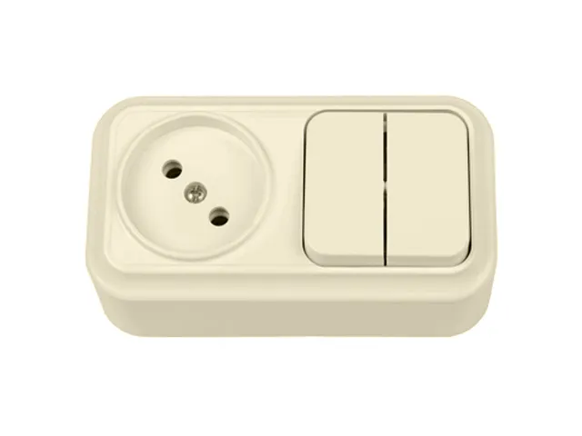 Блок выкл. 2 клав. + розетка (открытая, б/з) бежевая, Вариант, BYLECTRICA
