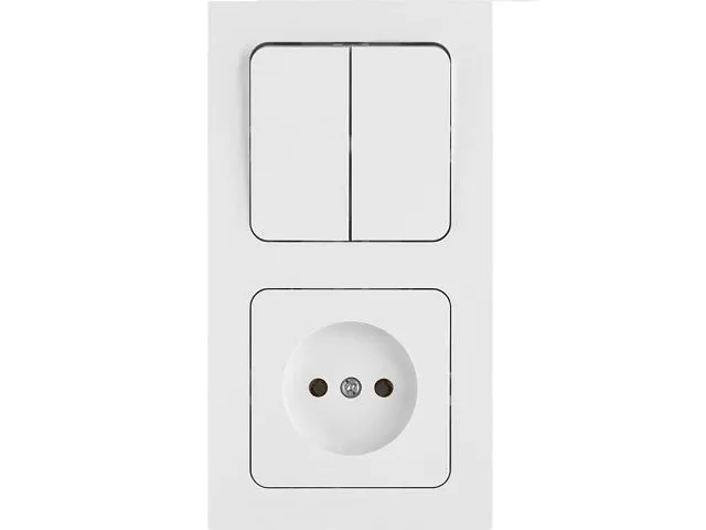 Блок выкл. 2 клав. + розетка (скрытая, б/з) белая, Astrum, BYLECTRICA