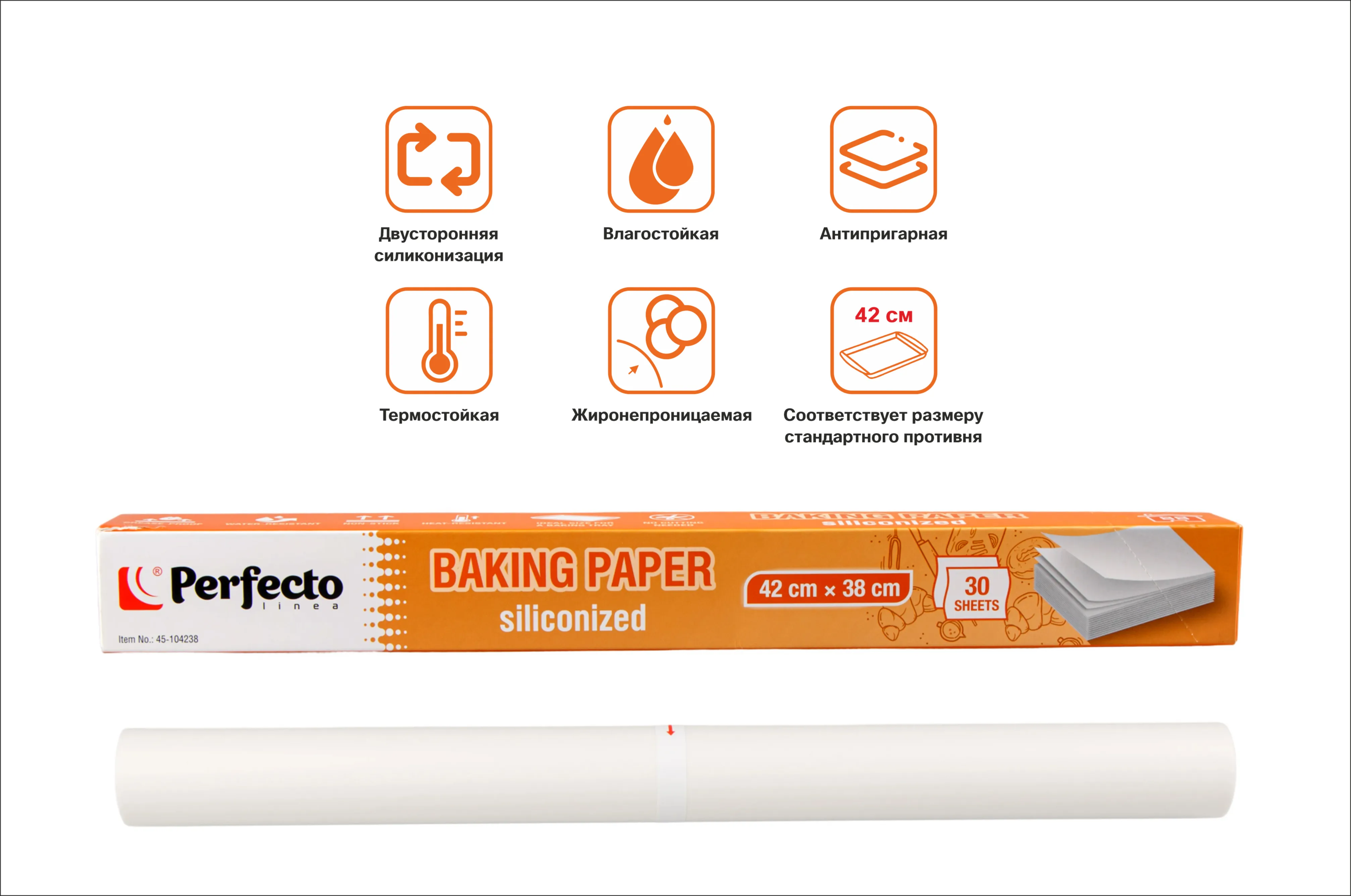 Бумага для выпечки пергаментная, силиконизированная, 30 листов, 42х38 см, PERFECTO LINEA