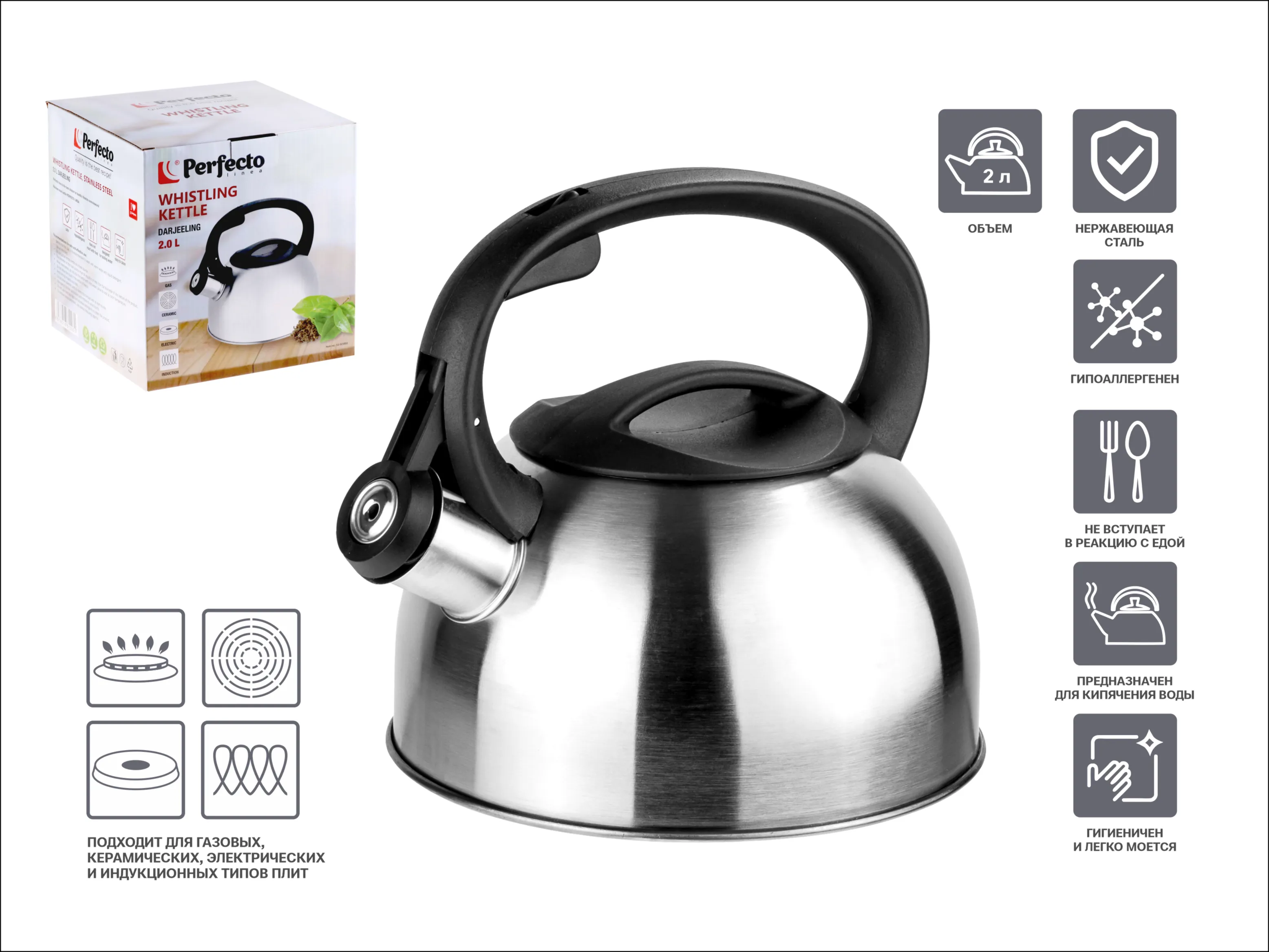 Чайник со свистком, нержавеющая сталь, 2.0 л, Darjeeling, PERFECTO LINEA