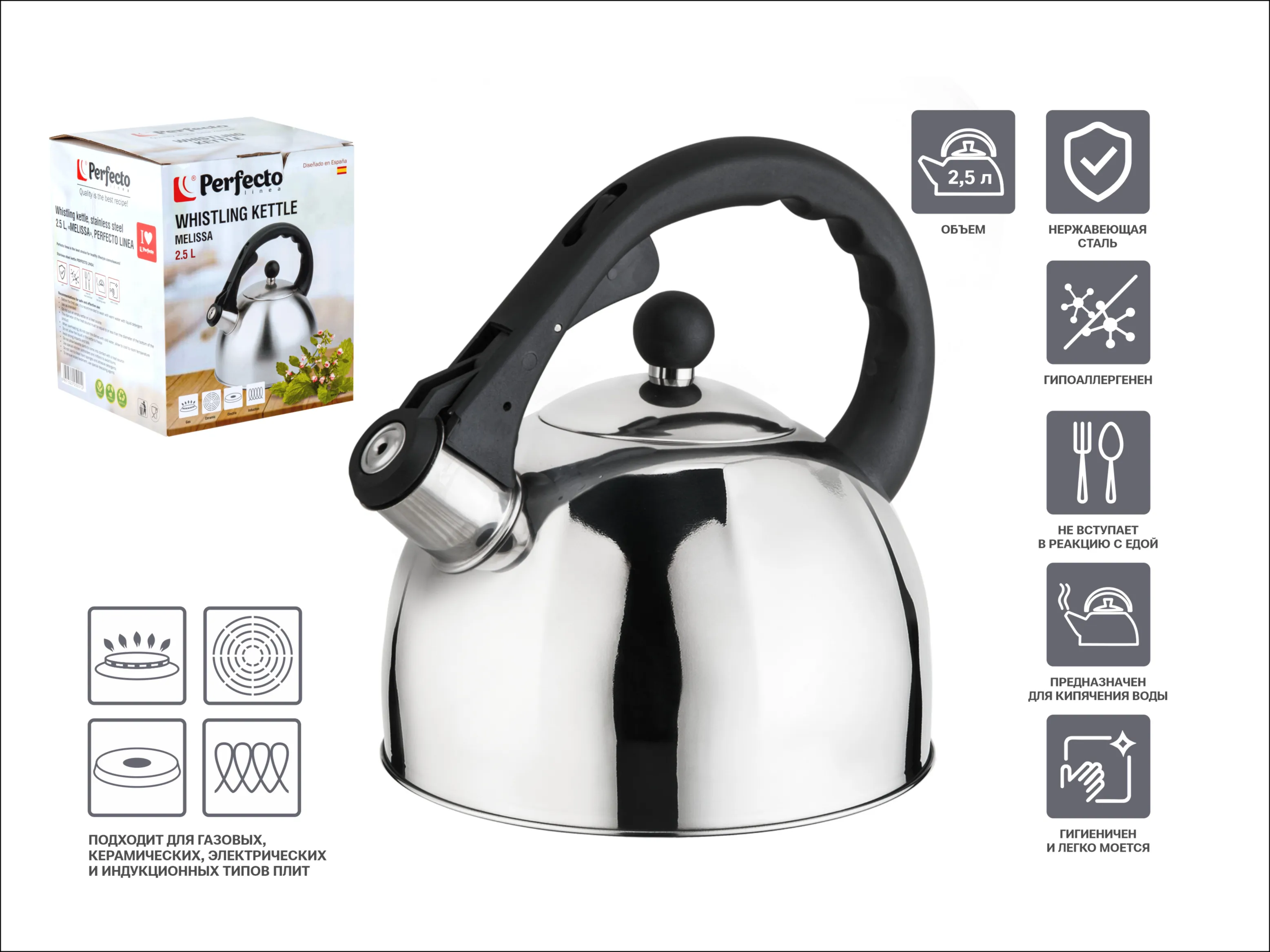 Чайник со свистком, нержавеющая сталь, 2.5 л, Melissa, PERFECTO LINEA