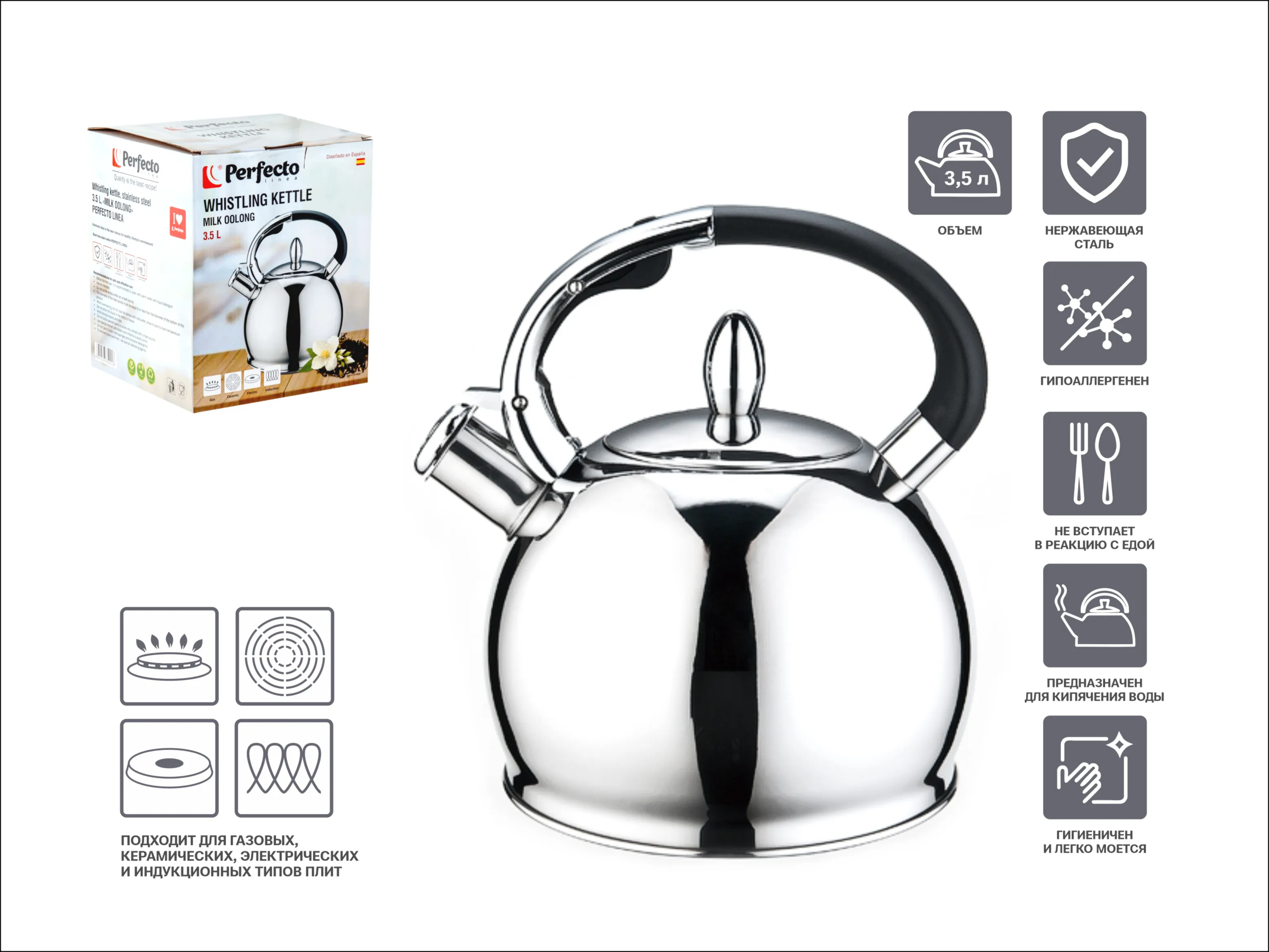 Чайник со свистком, нержавеющая сталь, 3.5 л, Milk Oolong, PERFECTO LINEA
