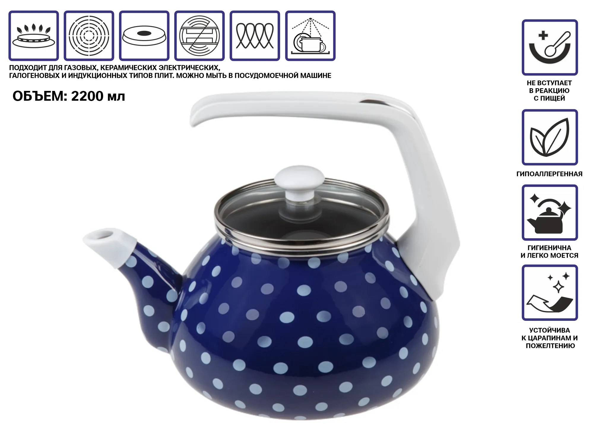 Чайник стальной эмалированный, 2.2 л, серия Горошек, PERFECTO LINEA