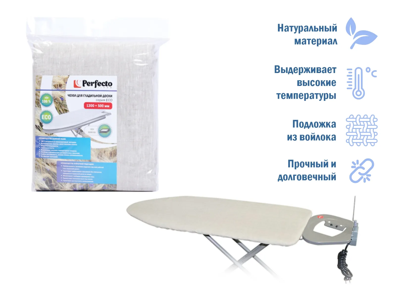 Чехол для гладильной доски, серия ECO, (лен с подложкой), 1300х500 мм, PERFECTO LINEA