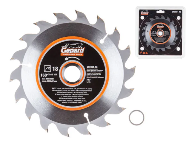 Диск пильный 160х20/16 мм 18 зуб. по дереву GEPARD