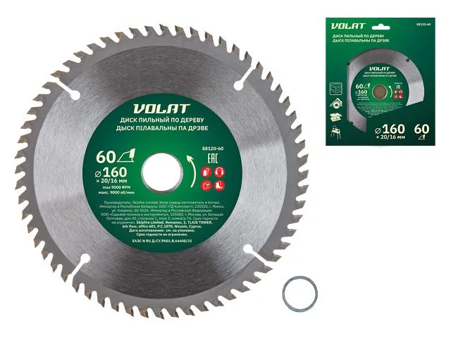 Диск пильный 160х20/16 мм 60 зуб. по дереву ВОЛАТ