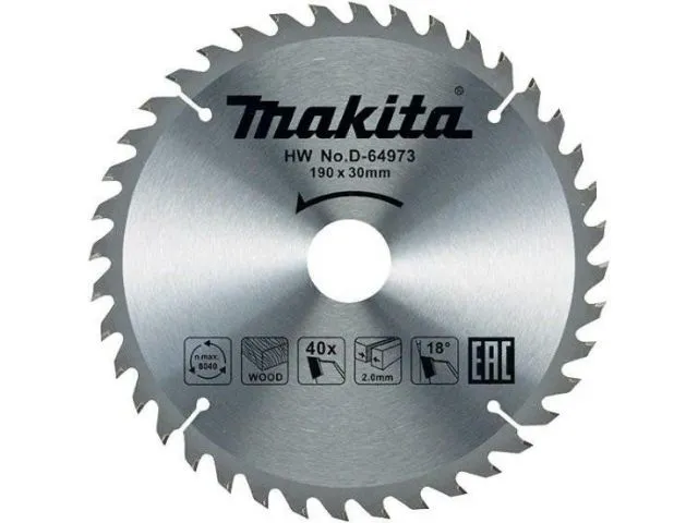 Пильный диск по дереву Makita Standard с твердосплавными напайками. Диаметр 190 мм, посадочное отверстие 30 мм, 40 зубов