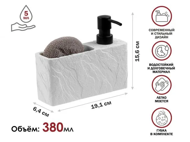 Вдобавок, каждый диспенсер поставляется в комплекте с губкой, создавая неотразимую комбинацию удобства и стиля.