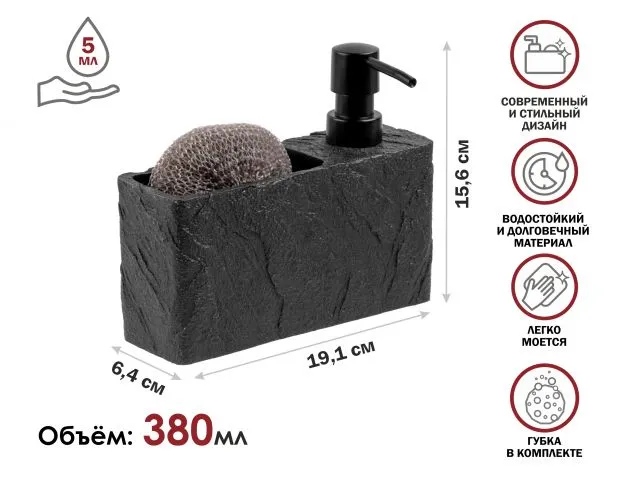Вдобавок, каждый диспенсер поставляется в комплекте с губкой, создавая неотразимую комбинацию удобства и стиля.