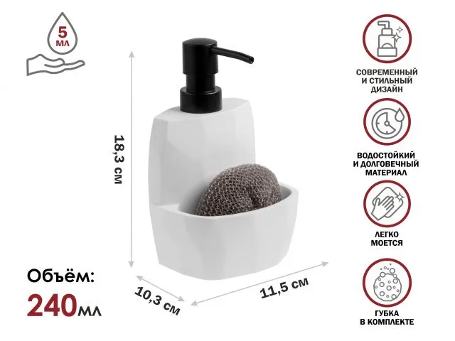 Вдобавок, каждый диспенсер поставляется в комплекте с губкой, создавая неотразимую комбинацию удобства и стиля.