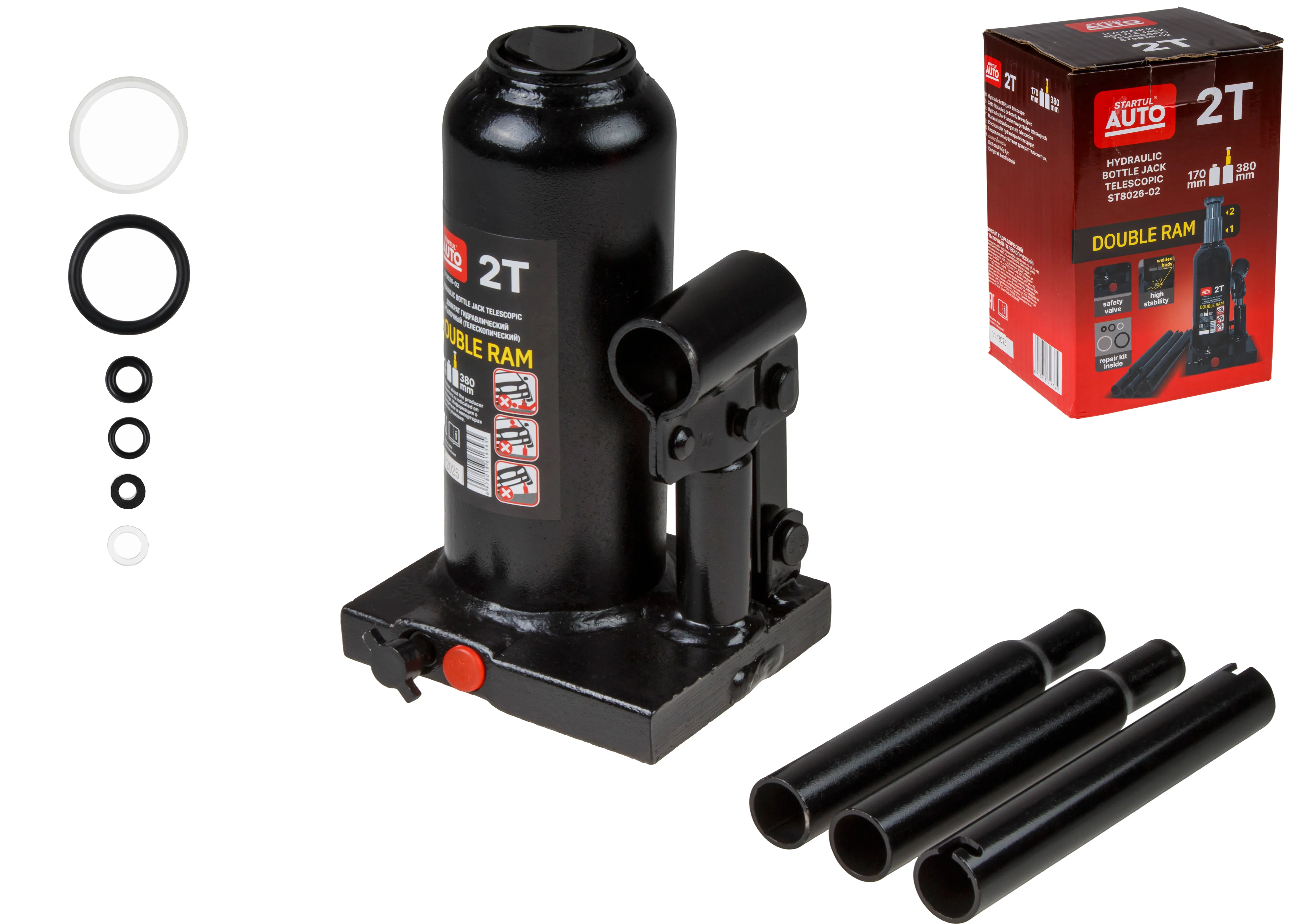 Домкрат гидравлический 2т бутылочный 170-380мм (телескопический) STARTUL AUTO (ST8026-02)