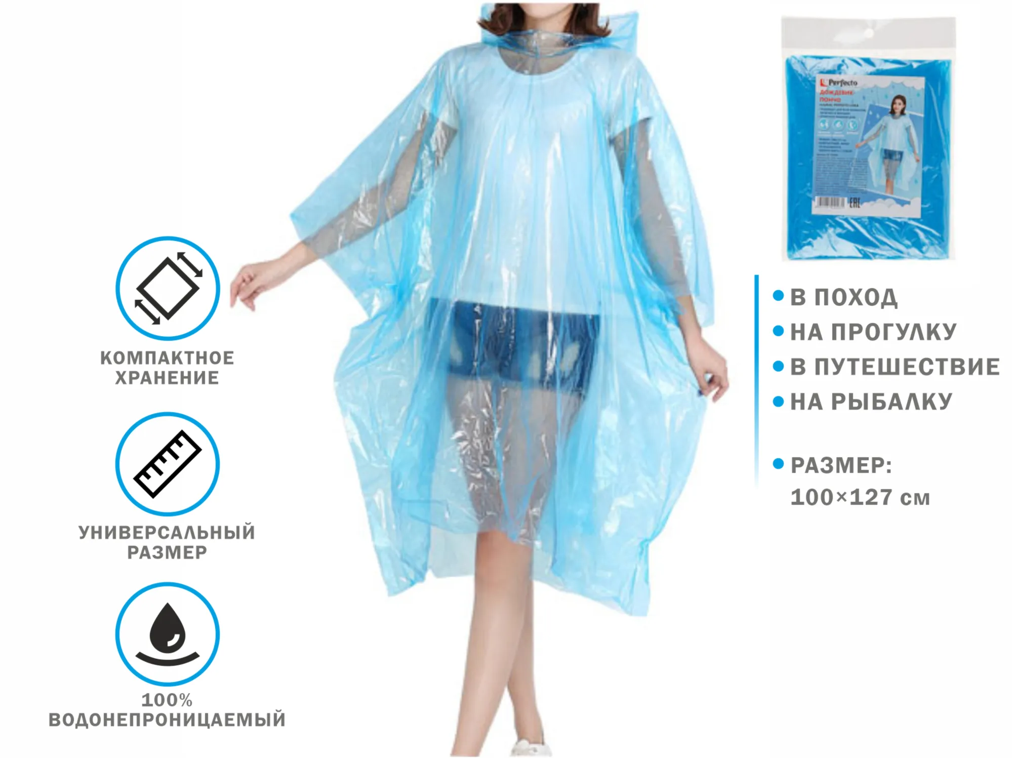 Дождевик-пончо, голубой, PERFECTO LINEA