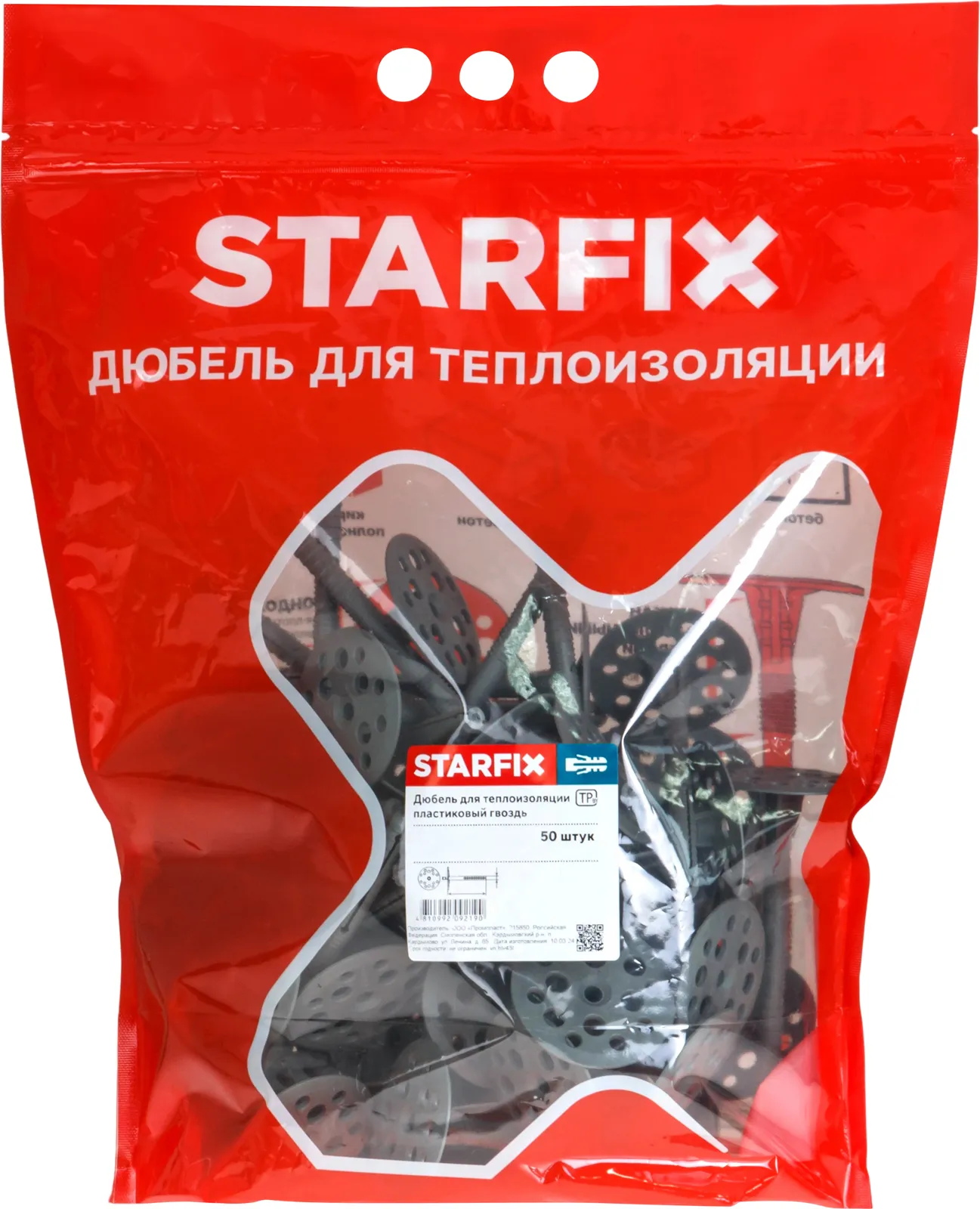 Дюбель для теплоизоляции 10х200 мм с пласт. гвоздем (30 шт в дой-паке) STARFIX