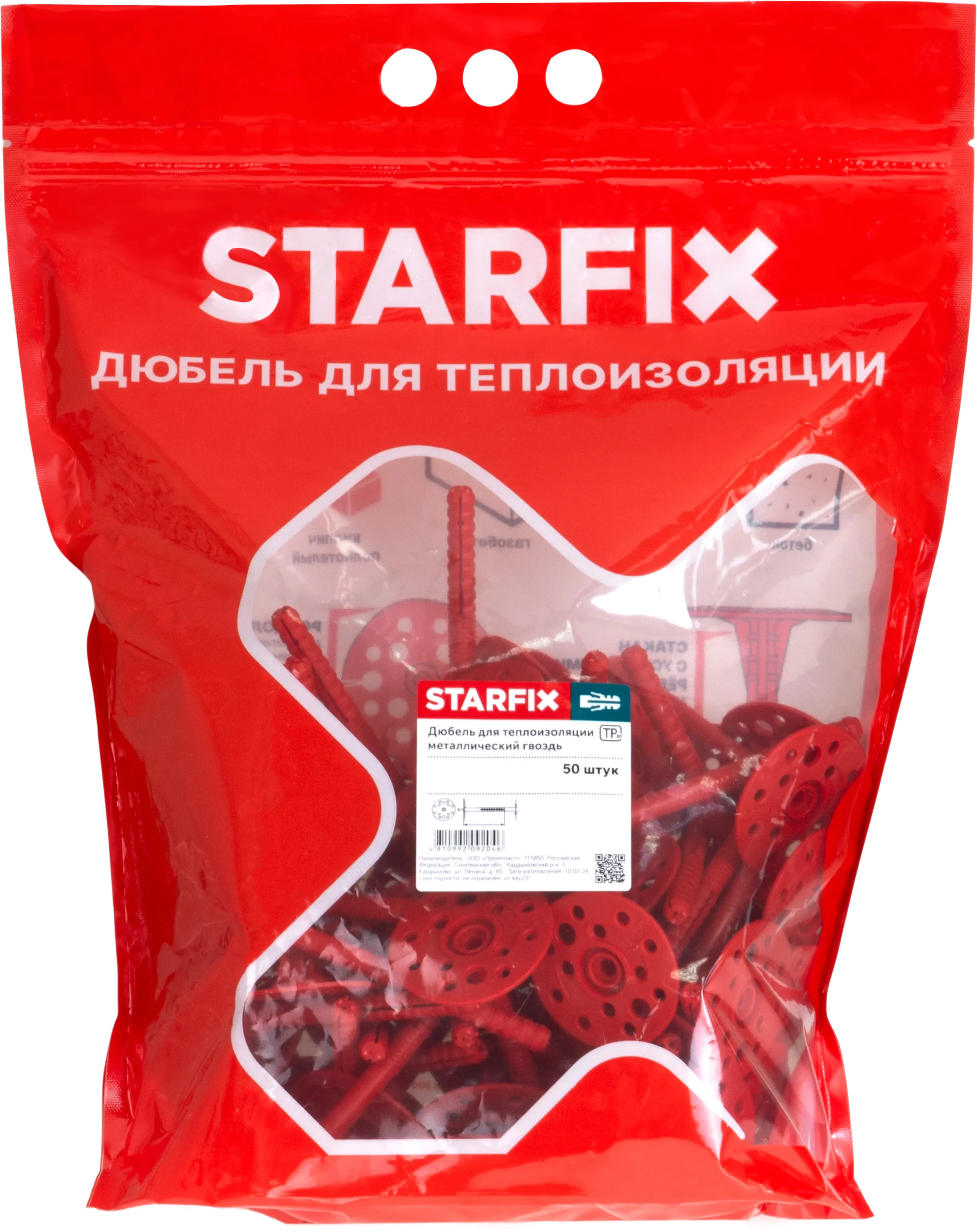 Дюбель для теплоизоляции 10х220 мм с металлич. гвоздем, термогол. (30 шт в дой-паке) STARFIX