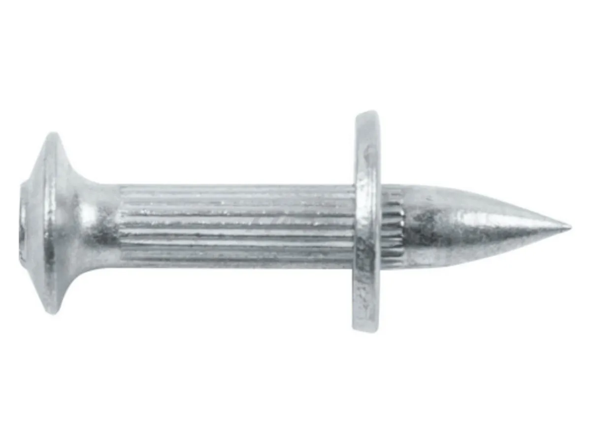 Предназначен для сквозного монтажа металлических и деревянных строительных конструкций к бетонным или кирпичным основаниям при помощи монтажного пистолета. Представляет собой металлический гвоздь, который имеет широкую шляпку и подвижную шайбу в районе острия. Шайба необходима для центровки и фиксации дюбель-гвоздя в монтажном пистолете перед выстрелом. Соединение получается неразборным. Категорически запрещается применять дюбель-гвозди для крепления механизмов и оборудования, подвергающихся вибрационным и (или) динамическим нагрузкам.