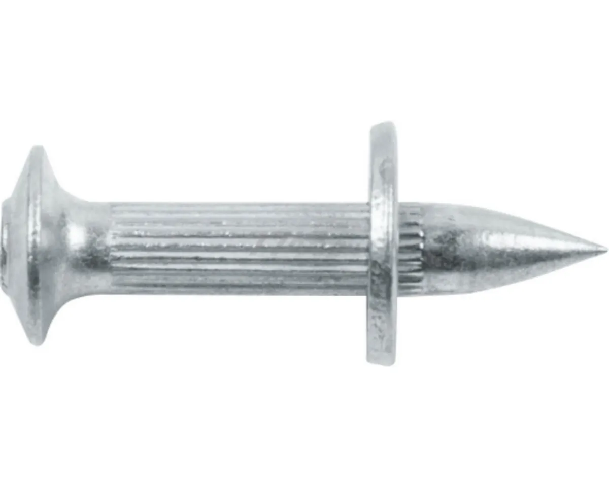 Предназначен для сквозного монтажа металлических и деревянных строительных конструкций к бетонным или кирпичным основаниям при помощи монтажного пистолета. Представляет собой металлический гвоздь, который имеет широкую шляпку и подвижную шайбу в районе острия. Шайба необходима для центровки и фиксации дюбель-гвоздя в монтажном пистолете перед выстрелом. Соединение получается неразборным. Категорически запрещается применять дюбель-гвозди для крепления механизмов и оборудования, подвергающихся вибрационным и (или) динамическим нагрузкам.