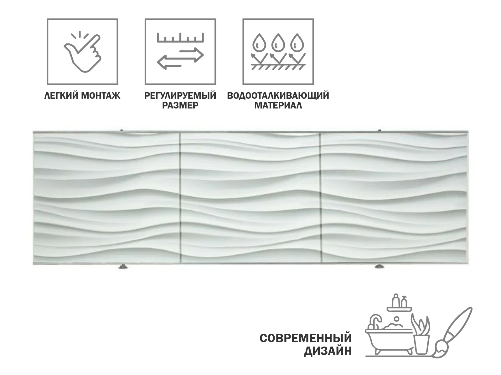 Экран под ванну 3D 1,5м, волна белая, PERFECTO LINEA