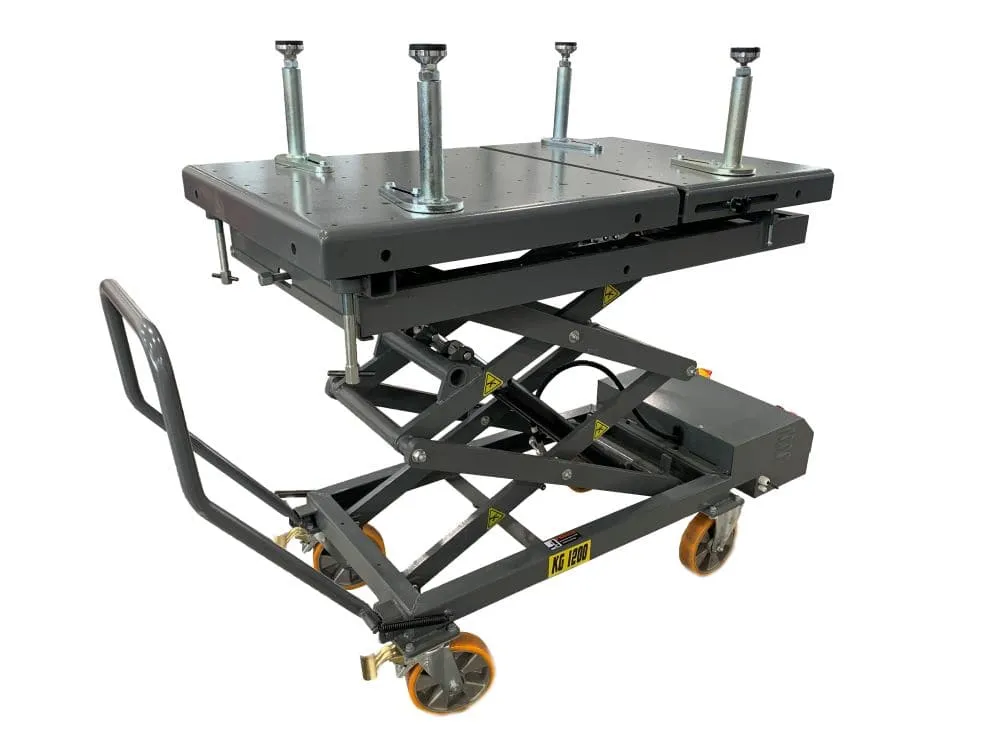 Электрогидравлический подъемник HLT-1200WJ является идеальным помощником для безопасного снятия и установки двигателей, коробок передач, высоковольтных аккумуляторных батарей или комплектных компонентов шасси благодаря их высокой грузоподъемности и максимальной высоте подъема.