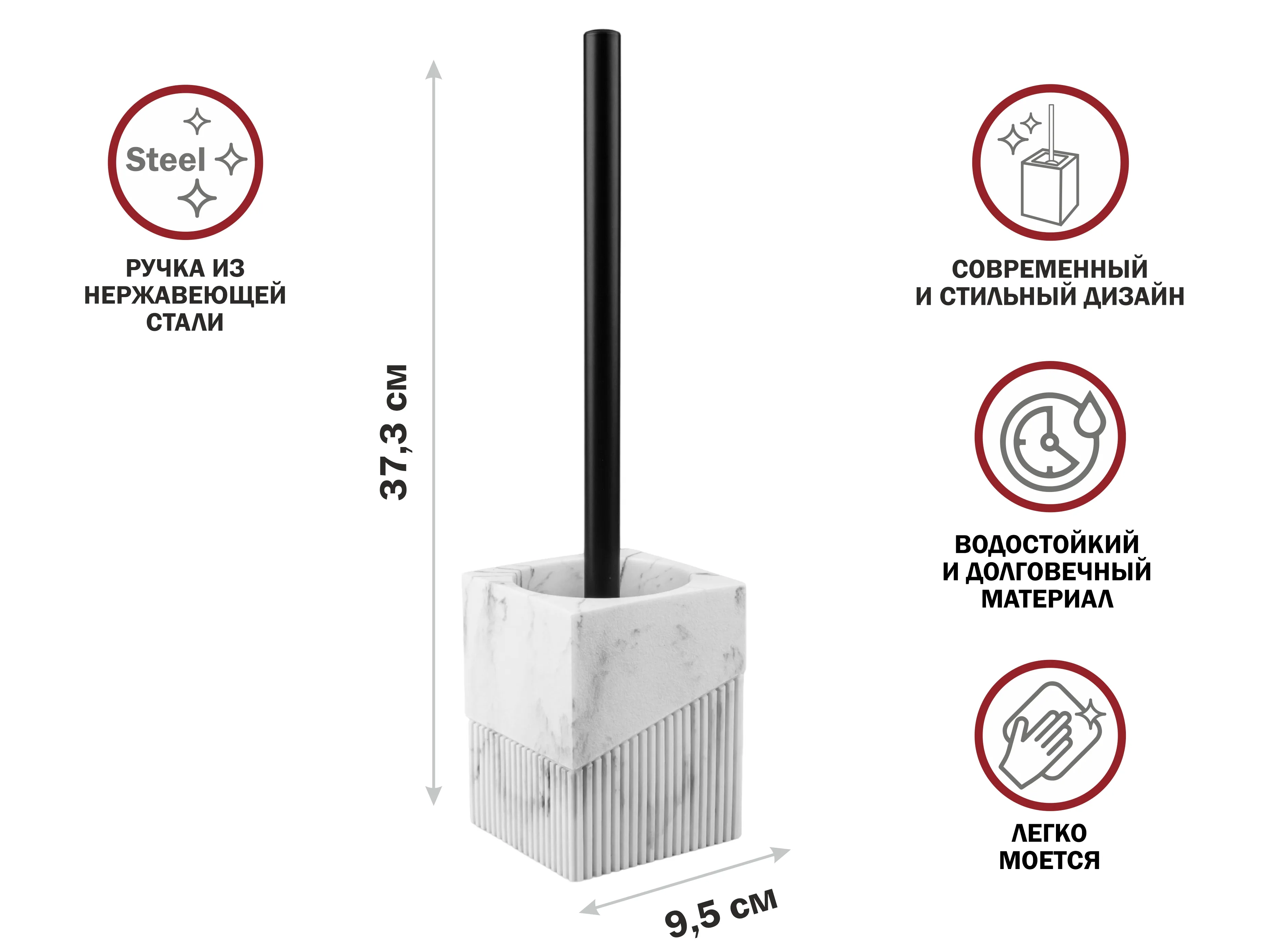 Ершик с подставкой ELEMENT MARBLE, белый, PERFECTO LINEA
