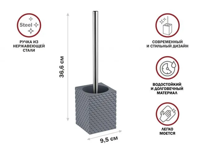 Ершик с подставкой STONE ESSENCE, серый, PERFECTO LINEA
