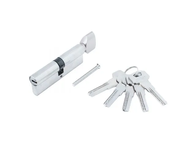 Механизм цилиндровый для врезных замков. Европрофиль. Перфоключ. Материал цилиндра - сталь, цинковый сплав. Ключ-вертушка. Выступающий на 30 градусов из плоскости механизма кулачок защищает цилиндр от выбивания из двери. Длина механизма - 90(40x10x40)мм.