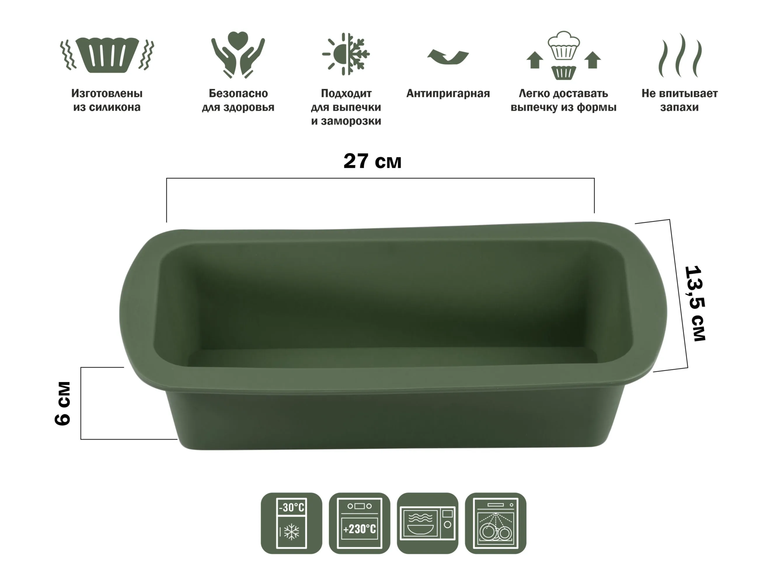 Форма для выпечки, силиконовая, прямоугольная, 27 х 13.5 х 6 см, NATURAL GREEN, PERFECTO LINEA