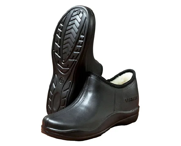 В зависимости от утеплителя обувь из ЭВА выдерживает морозы от нуля до -70С. Ногам тепло и комфортно, даже если стоять в снегу или ледяной луже.