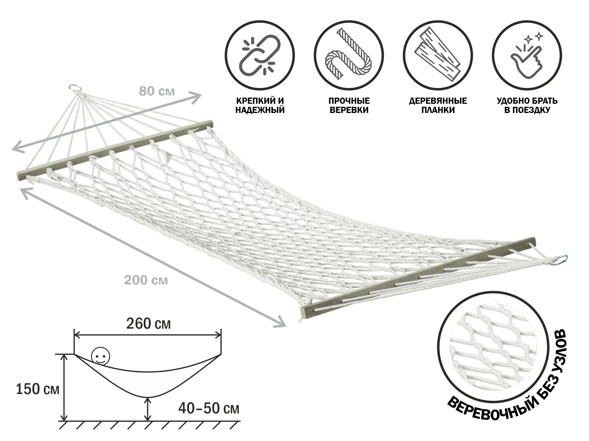 Гамак подвесной с брусками, 200х80 см, веревочный без узлов, Garden (Гарден), ARIZONE