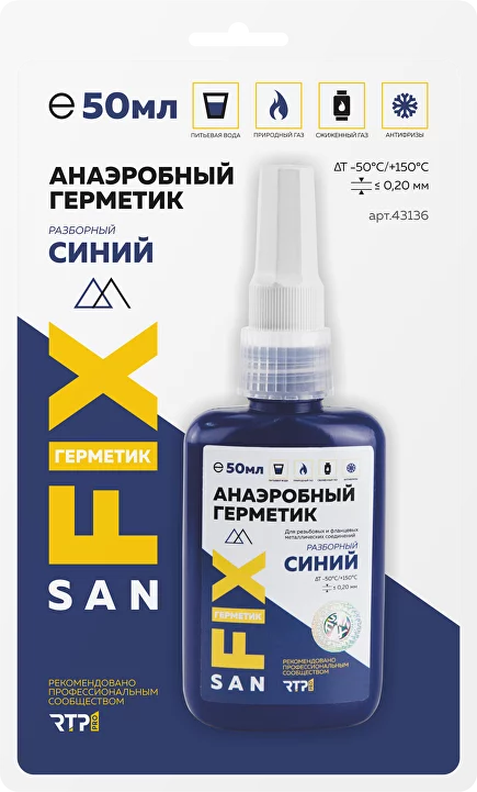 Герметик анаэробный разборный, средней прочности, средней вязкости 50 мл., блистер синий, SANFIX