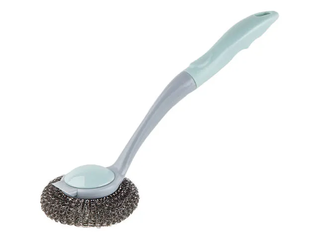 Губка (скребок) металлическая на ручке, KLINKO, голубая лагуна, PERFECTO LINEA